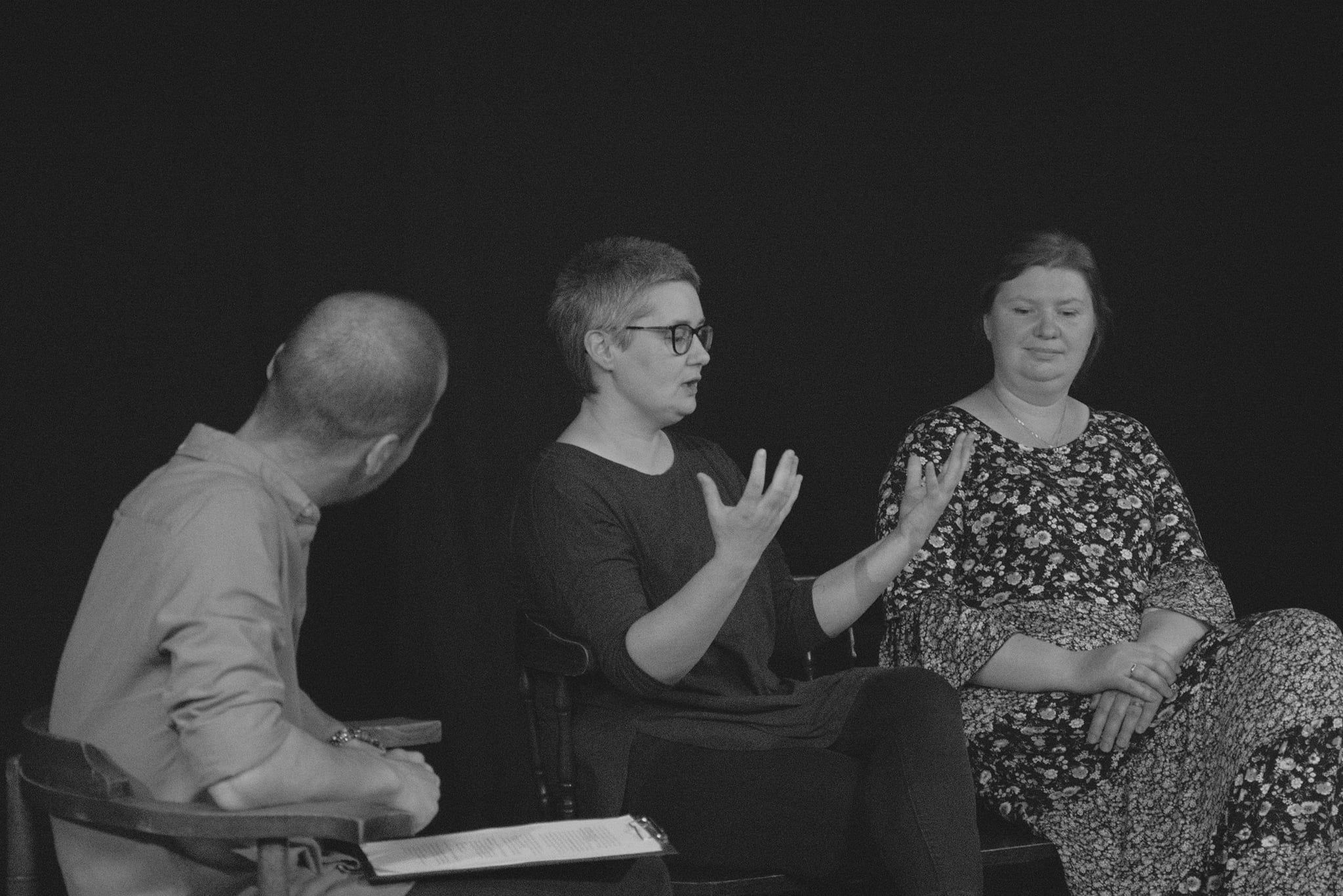 Kameralna atmosfera spotkania z autorkami: dr Barbarą Forysiewicz z Katedry Kulturoznawstwa Wydziału Filologicznego UG oraz mgr Małgorzatą Polakowską, aktorką Teatru Gdynia Główna i członkinią zarządu Stowarzyszenia Artystyczno-Społecznego Feeria, a także Idą Bocian – dyrektorką Teatru Gdynia Główna zaowocowała niezwykle ciekawą rozmową na temat korzystania z technik teatralnych w pracy z młodzieżą i osobami wykluczonymi oraz efektów, jakie można uzyskać dzięki pracy z formą teatru forum. Spotkanie promocyjne wokół książki Teatr jako kulturotechnika w socjoterapii transmitowane było na żywo na stronie Teatru Gdynia Główna na Facebooku.